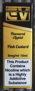 Today we’re having another blast on a juice in the EV Gold Edition range. This one is Pink Custard by Exceptional Vapes. EV have an extensive range of E-liquids available on their website. A lot of their range are Desert Sweet based flavours, which judging by this range so far, they do very well. They are based in Derbyshire, UK and have also opened a store in the area. Their customer service is very good and also have a live chat option on their website, should there be any issues.