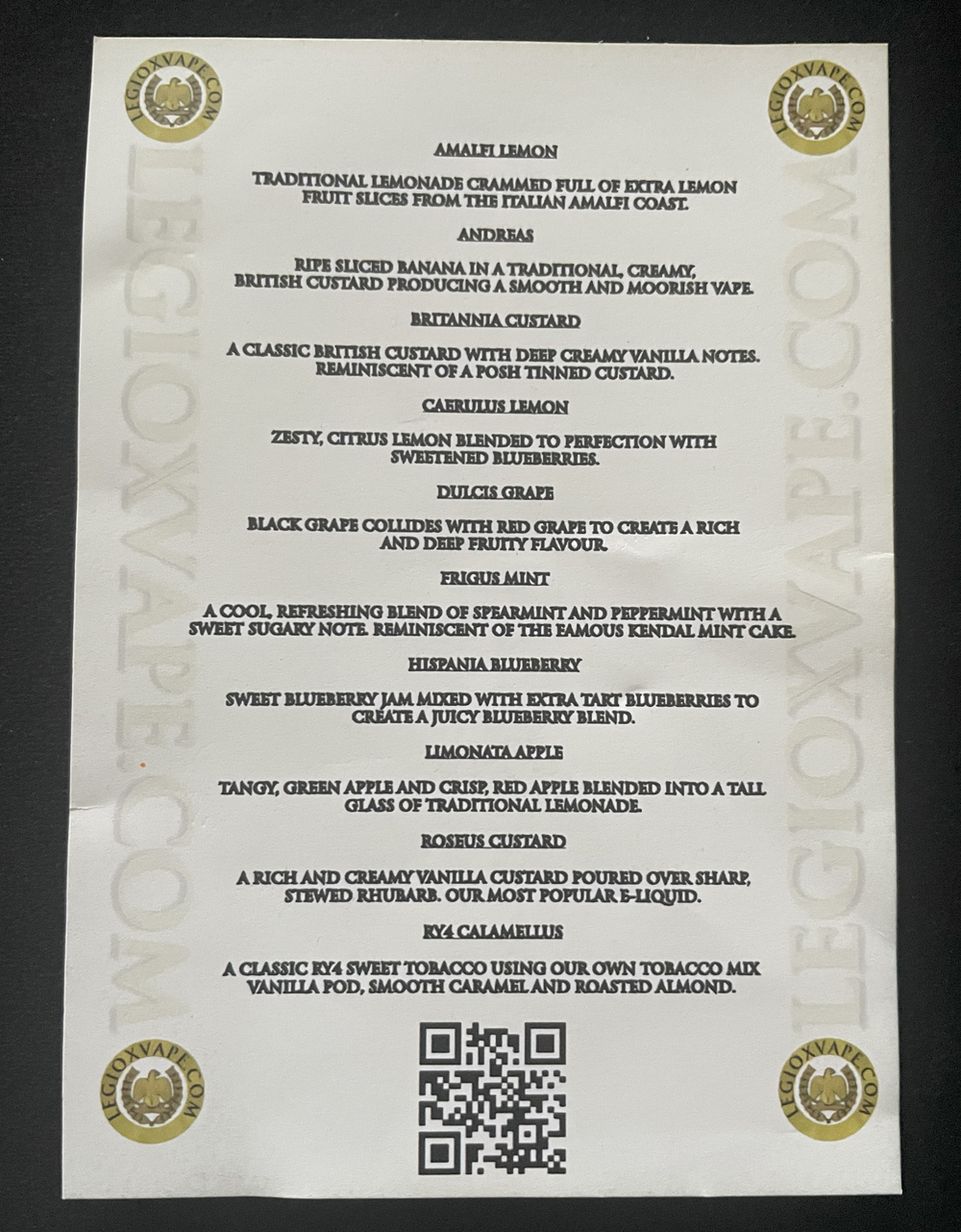 LegioX has been gaining a lot of momentum in the vape scene, appearing at the UK Expo’s and I’d seen and heard of the brand many times online, so am keen to give these juices a try!